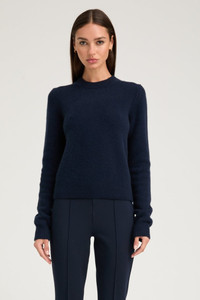 This 100% Cashmere crewneck is your classic, everyday sweater. With a slightly fitted silhouette that can easily be tucked in, this sweater transitions you from an effortless lounge look to elevated and chic. Made from our high-quality Mongolian yarns, this ultrasoft sweater is super durable and will last season after season. The perfect base layer for any outfit — you'll want it in every color. COLOR: Navy FIT & MEASUREMENTS - Fits true to size - Anna is 5'11 & wears size Small PRODUCT DETAILS - 100% Cashmere - Sustainably grown, organic yarn - Crew neckline - Dry clean only