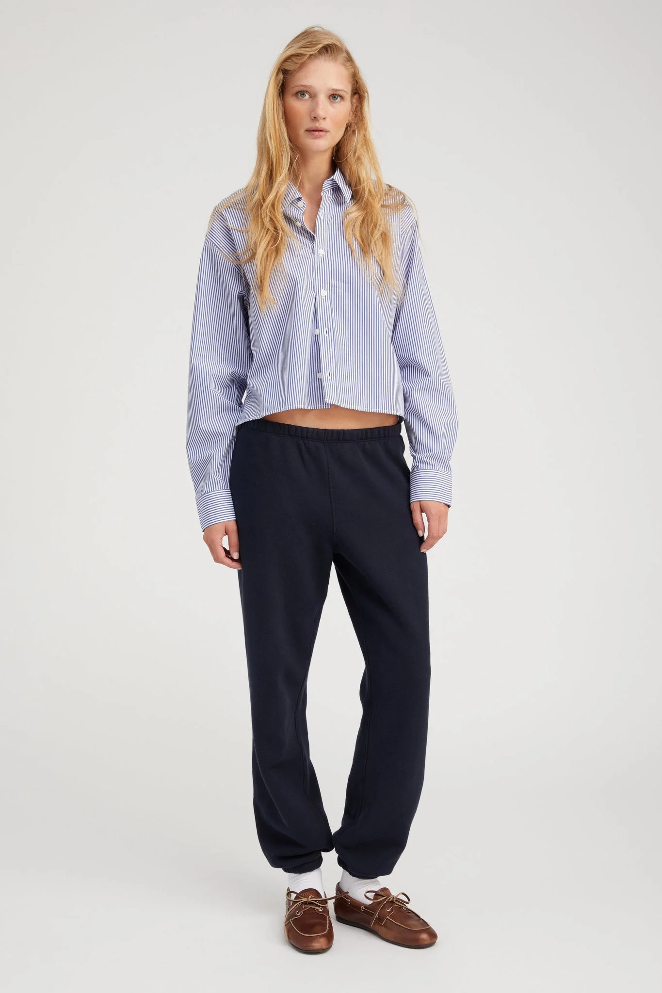Our signature logo sweatpants are an easy pull-on style, subtly printed with our SPRWMN logo at the ankle. Renowned for their extremely soft and heavyweight fabric, these sweatpants feature a cozy and effortless feel. For the perfect outfit, complete the look with the matching sweatshirt. COLOR: Navy, White Logo FIT & MEASUREMENTS - Fits true to size - Emma wears size Small PRODUCT DETAILS - 100% Cotton - Pull-on fit - Small SPRWMN logo at the ankle - Machine wash cold, tumble dry low
