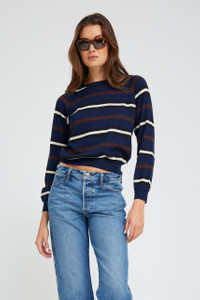 NAVY STRIPED CASHMERE RAGLAN SWEATER