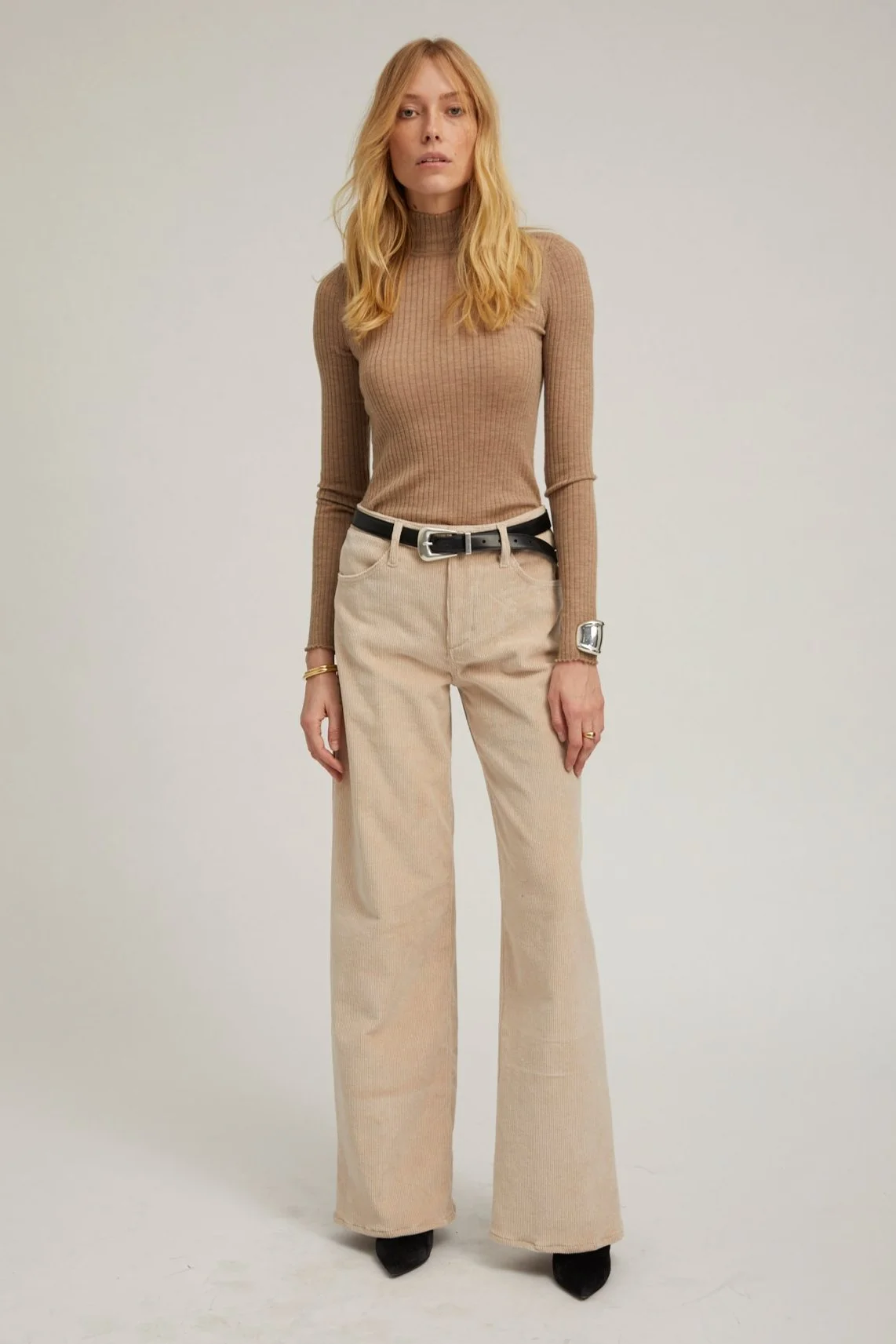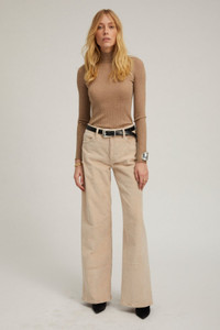 Designed in a soft yet sturdy wide-ridge corduroy - a classic material for Fall. Inspired by luxury vintage fits, this mid-rise, wide leg silhouette is designed to sit relaxed at the waist, hips, and thigh, for an effortlessly chic and laid-back look that elongates your figure. Pair these with a tank and leather blazer. COLOR: Oat FIT & MEASUREMENTS - Oversized fit, for a tighter fit at the waist & hips - size down - 34" inseam, 11" rise, 22" leg opening - Lauren wears size 26 PRODUCT DETAILS - 77% Cotton, 22% Tencel, 1% Elastic - Button front, zipper fly - 5 functional pockets - Machine was cold, tumble dry low
