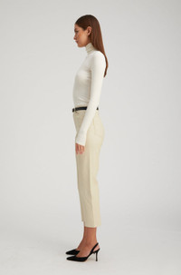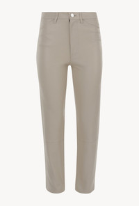 A luxurious take on a classic straight-leg fit made in our signature stretch-leather which areeffortlessly chic and easy to wear. Featuring functionalfive pockets, belt loops, and an-ultra sleek fit, these pants strike the perfect balance of modern and edgy. With a wide range of styling options these pair well with heeled boots or sneakers, a cable sweater or a blouse. COLOR: Off White - Cream FIT & MEASUREMENTS - Fits true to size - Our lambskin gives naturally over time; if in-between sizes, size down - Relaxed, straight fit - 27" inseam, 11" rise, 7" leg opening - Kiana is 5'11 & wears size Small PRODUCT DETAILS - 100% French Lambskin - Stretch Leather - Cotton-Lycra lining - Eco friendly, hypoallergenic and chrome-free vegetal dyed - Button front, zipper fly - 5 functional pockets - Leather specialist clean only