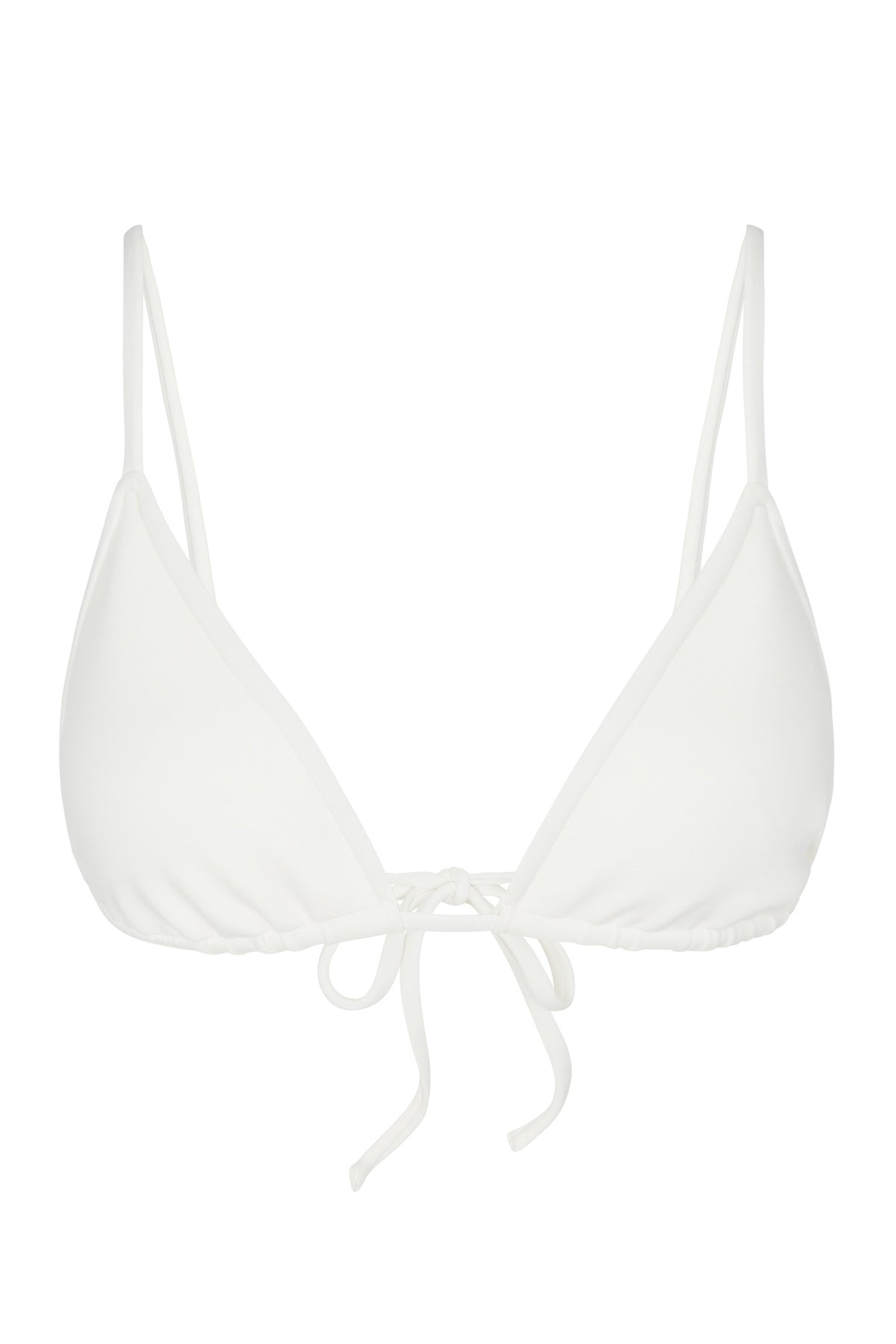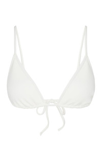 Our take on a classic triangle tie-back bikini top with medium coverage and thin straps that can be worn straight or around the neck. Designed in our body-sculpting sport fabric, with no need for lining, thisstretchy and smoothing materialis made to mold to your body, featuring maximum resiliency so it won't lose it's shape after repeat wear. Pair with our matching bikini briefs for the complete look. COLOR:White FIT & MEASUREMENTS - Fit true to size - High cut fit, unlined - Models wear size Small PRODUCT DETAILS - 78% Polyester 22% Elastane - Machine wash cold - Tiny white logo on back