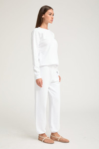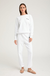 Our classic crewneck sweatshirt is designed for a relaxed fit made from 100% cotton for a crisp feel with an ultra-lightweight touch. Featuring our tiny 'superwoman' logo, this sweatshirt will keep you comfy & cozy without compromising on style. Complete the look with the matching sweatpants for an effortlessly chic and casual go-to. COLOR: Optic White, Black Logo FIT & MEASUREMENTS - Fits true to size - Adama is 5'11 & wears size Small PRODUCT DETAILS - 100% Cotton - SPRWMN logo on the front - Machine wash cold, tumble dry low