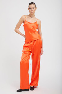 Made from lightweight and luxurious silk, our Kauai pants will keep you feeling cool and airy on any occasion. Featuring a comfortable, loose fit with a stretchy drawstring waistband for effortless pull-on wear. Pair with the matching tank for the perfect look. COLOR: Orange FIT & MEASUREMENTS - Fits true to size - 31.5" inseam - Kennedy is 5'11 & wears size Small PRODUCT DETAILS - 100% Silk - Drawstring waistband, pull-on fit - Side slit pockets - Dry clean only