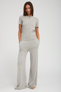 These fine-knit lightweight cashmere pants are a lounge favorite. This wide-leg silhouette features a high-rise elastic waistband that naturally cinches your waistline for a flattering fit you can wear all day long. Made in our high-quality, ultrasoft Mongolian yarn, you'll fall in love with these pants, as their elegant drape makes them look like a dress pant, but they feel like a sweatpant. Pair them with our matching cashmere tees or sweaters for the perfect elevated lounge look. COLOR: Oxford FIT & MEASUREMENTS - Relaxed fit - Anna is 5'11 & wears a size Small PRODUCT DETAILS - 100% Cashmere - Sustainably grown, organic yarn - Side slit pockets - Pull-on fit - Elastic waistband - Dry clean only