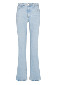 Our bootcut will quickly become an essential, and fun, part of your wardrobe. Made from 100% Cotton for a classic denim look and feel, these jeans are designed for a slimming fit that flares past the ankle which creates an elongating look with some added flare. Featuring our signature V-back belt loops and faux croc embossed label for a chic detail that accentuates your natural waist. Easily pair these with anything - our favorite is a baby tee and sneakers or a sweater and heels. WASH: Paradis - Light Blue Vintage Stone Wash FIT & MEASUREMENTS - Fits true to size - 33.5" inseam, 10.5" rise, 10.5" leg opening - Kiana is 5'11 & wears size 26 PRODUCT DETAILS - 100% Cotton - Non-Stretch Denim - Japanese Denim - Front zipper & button closure - 5 pockets - Machine wash cold, tumble dry low