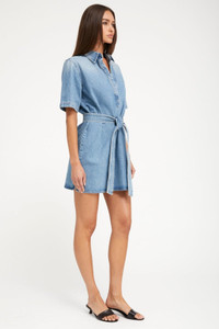 Made from 100% Cotton for a classic denim look and feel, our mini henley dress will become your favorite, everyday go-to. Wear this dress with the waist tie to accentuate your natural waist, or without, for a more relaxed look. COLOR: Paradis - Light Blue Vintage Stone Wash FIT & MEASUREMENTS - Fits true to size - Anna is 5'11 & wears size Small PRODUCT DETAILS - 100% Cotton - Non-Stretch Denim - Japanese Denim - Machine wash cold, tumble dry low