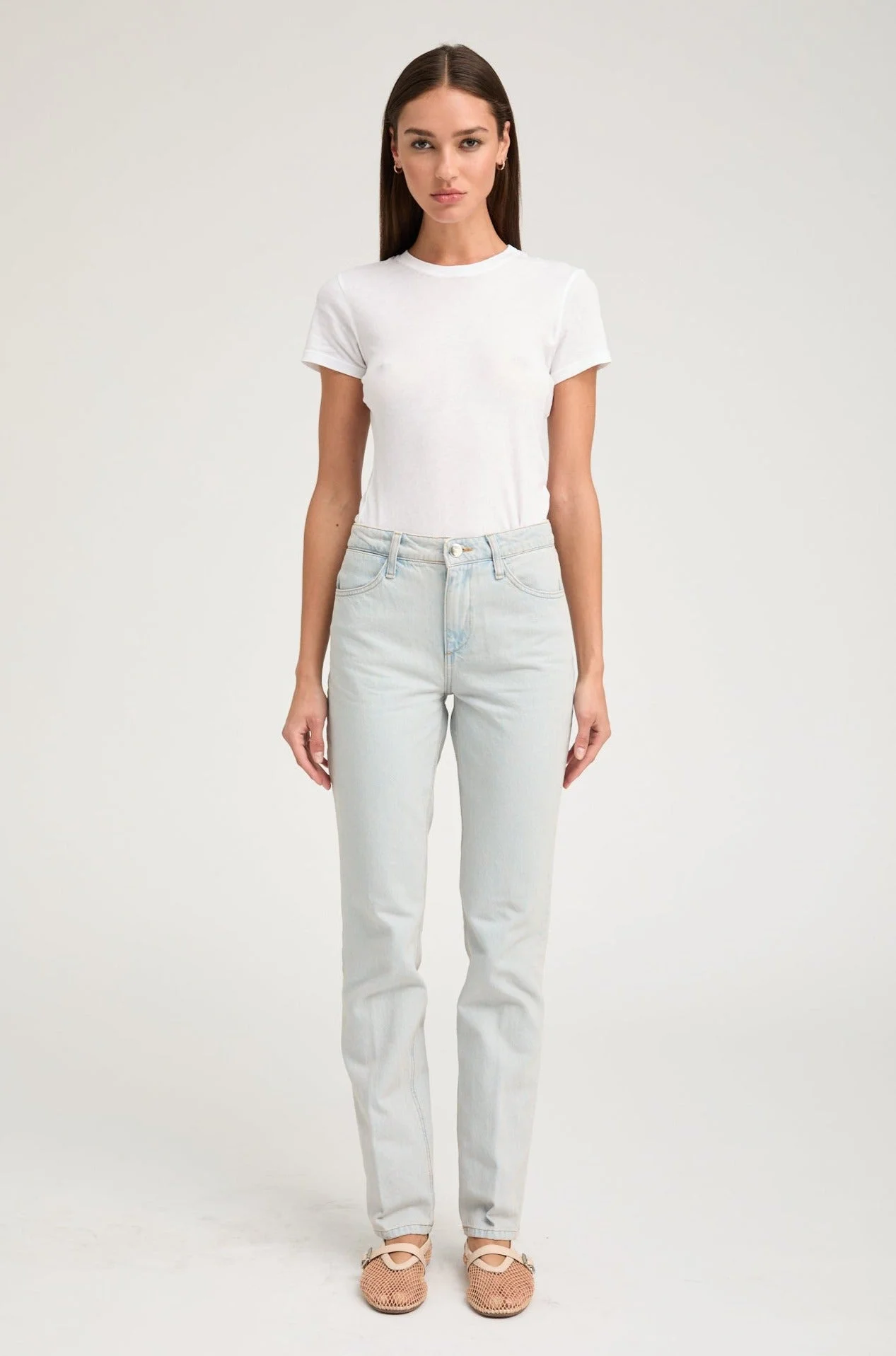 Our Straight Leg jeans, made from stretch-denim that moves with you and won't lose its shape. Designed to sit high on the hips, they're cut for a flattering skinny fit with cropped cuffs that works perfectly with your favorite ankle boots, heels or sneakers.Featuring our signature V-back belt loops and faux croc embossed label for a chic detail that accentuates your natural waist. COLOR: Piaf - Ultra Light Wash FIT & MEASUREMENTS - Fits true to size - High-rise, skinny-fit - 33" inseam, 10.5" rise, 7" leg opening - Kiana is 5'11 & wears size 26 PRODUCT DETAILS - 100% Cotton - Non-Stretch Denim - Japanese Denim - Cropped cuffs - Front zipper & button closure - Machine wash cold, tumble dry low