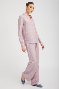 PINK INDIGO STRIPED LINEN EASY PANTS