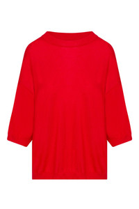 Knitted in our high quality, thin ribbed ultra-soft Mongolian Cashmere, this boxy tee will easily become your new favorite go-to. Elegantly designed for everyday wear, this slightly oversized tee has just the right amount of stretch. With a wide range of styling options, tuck this top into your favorite high waisted bottoms, or wear undone for the perfect laid-back look. COLOR: Red FIT & MEASUREMENTS - Relaxed fit - Mika wears size Small PRODUCT DETAILS - 100% Cashmere - Sustainably grown, organic yarn - Lightweight - Room for layering - Dry clean only