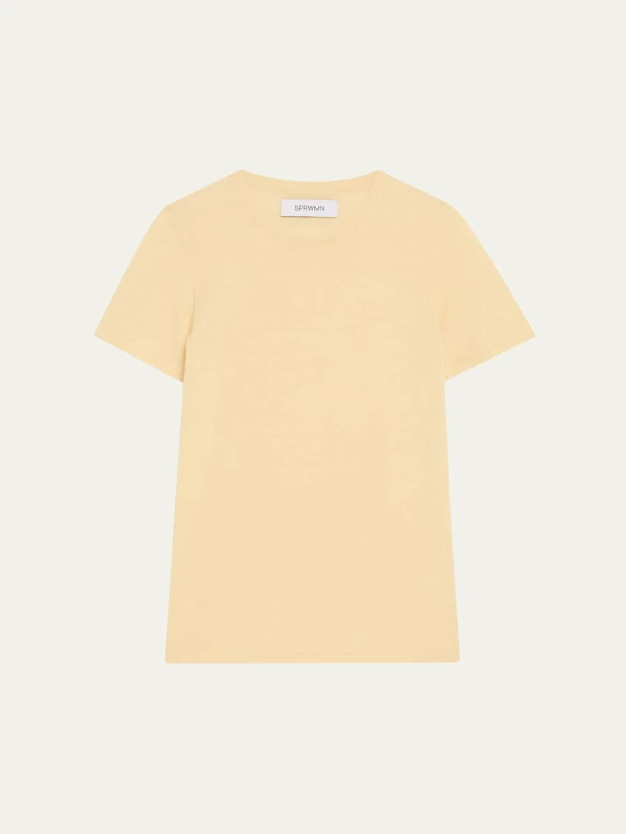 SPRWMN lightweight t-shirt crafted from cashmere Crew neckline Short sleeves Slim fit Hip length Pullover style Cashmere Dry clean Imported Online Inquiries: BGS21_T6LN1| Store Inquiries: #5006972