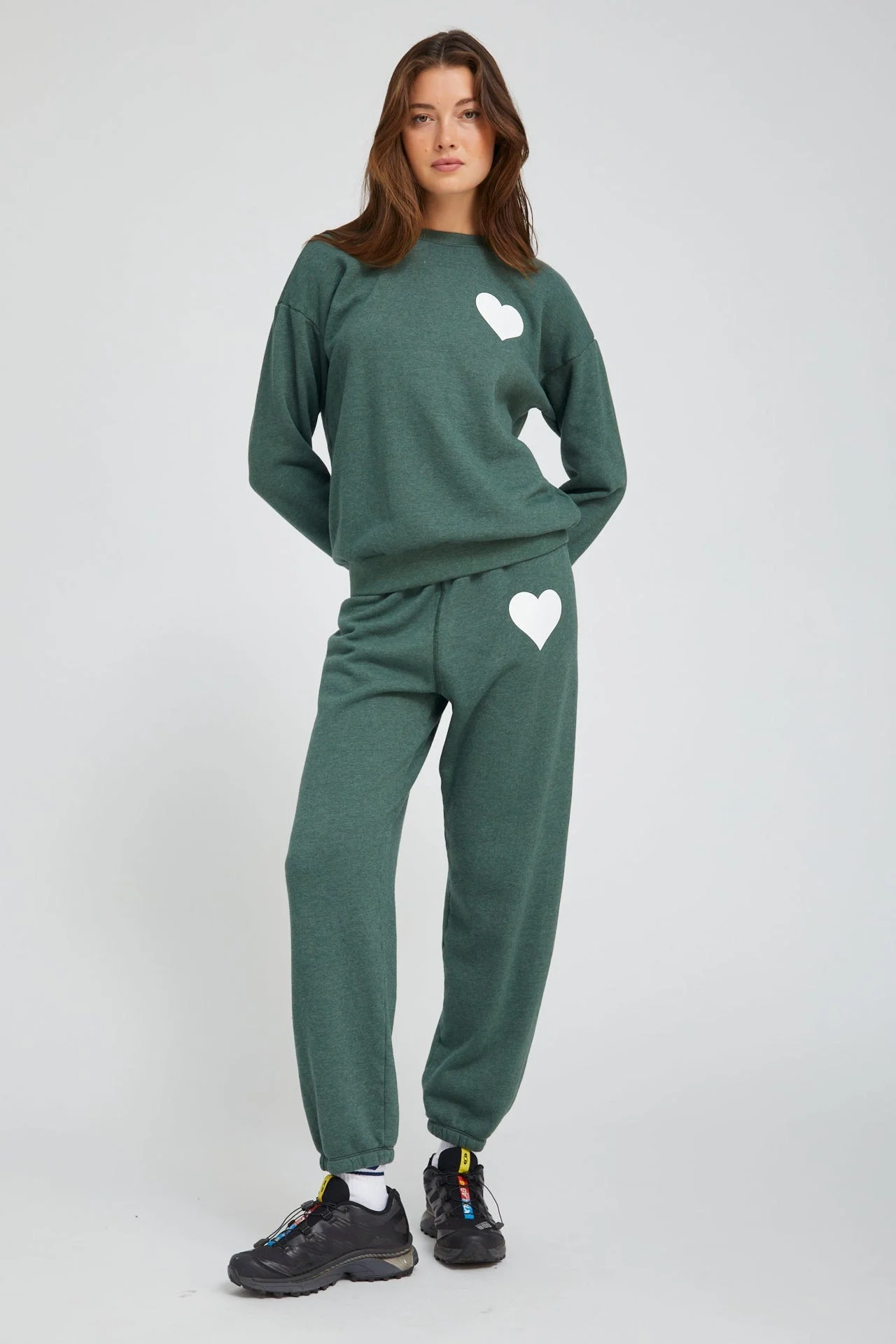 SPRWMN's heart logo joggers are made from our signature cotton-fleece blend, renowned for its luxuriously-soft, yet lightweight feel. Subtly printed with our iconic heart logo, these sweatpants are designed for a relaxed fit creating the perfect balance between casual and chic. Complete the look with our signature heart sweatshirt or hoodie. COLOR: Sage, White Heart FIT & MEASUREMENTS - Fits true to size - 29" inseam, 13" rise, 9" leg opening - Kennedy is 5'11" & wears size Small PRODUCT DETAILS - 50% Polyester, 38% Cotton, 12% Rayon - Elastic waistband, pull-on fit - For first wash, machine wash cold by itself - Machine wash cold, hang to dry - *Due to the soft nature of the fabric, slight pilling may occur