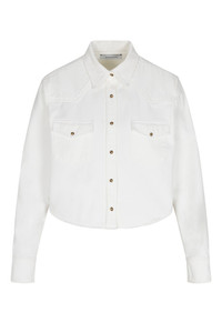 A luxe take on a classic utilitarian style button down; this western cropped button down is designed from 100% cotton for a classic denim look and feel. Pair this top with your favorite SPRWMN denim or wear with leather pants for an ultra chic, yet laid-back, look. WASH: Sophia - Optic White FIT & MEASUREMENTS - Fits true to size - Cropped fit - Emma is 5'10 & wears size Small PRODUCT DETAILS - 100% Cotton - Non-Stretch Denim - Japanese Denim - Machine wash cold