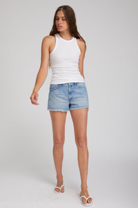 The Victoria 5 Pocket Denim shorts are a timeless base style for so many warm weather outfits. With 5 functional pockets and a classiccut-off raw hemshape, these are a style that you can wear with a classic button down shirt or a tucked in tank top. WASH:Victoria - Light Vintage Blue 100% Cotton - Non-Stretch Denim Japanese Denim Machine wash cold, tumble dry low 5 functional pockets Front zipper & button closure Fits true to size High-rise, slim fit 3" inseam, 11.5" rise, 25" leg opening Bianca wears size 26 FIT & MEASUREMENTS - Fits true to size - High-rise, slim fit - 3" inseam, 11.5" rise, 25" leg opening - Bianca wears size 26 PRODUCT DETAILS - 100% Cotton - Non-Stretch Denim - Japanese Denim - Machine wash cold, tumble dry low - 5 functional pockets - Front zipper & button closure