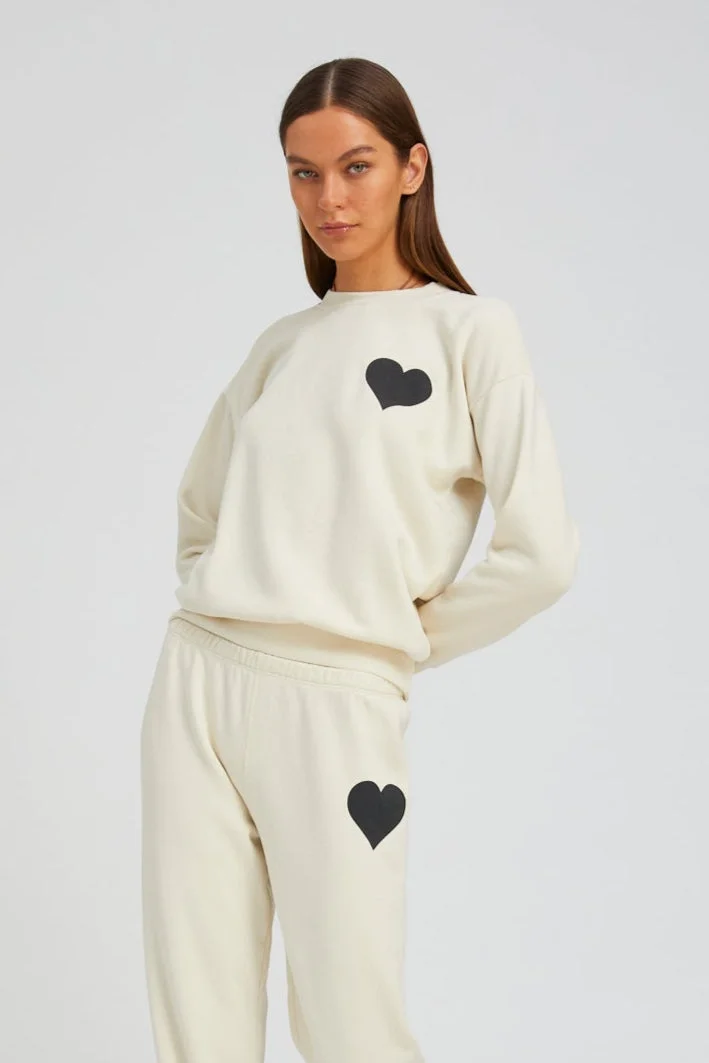 Our classic crewneck sweatshirt is designed for a relaxed fit from a blend of plush cotton-fleece for an ultra-soft feel. Featuring our cult heart logo, this sweatshirt will keep you feeling comfy & cozy without compromising on style. Complete the look with the matching sweatpants for an effortlessly chic and casual go-to. COLOR: Vintage White, Black Heart FIT & MEASUREMENTS - Fits true to size PRODUCT DETAILS - 50% Polyester, 38% Cotton, 12% Rayon - Heart logo - For first wash, machine wash cold by itself - Machine wash cold, tumble dry low - * Due to the soft nature of the fabric, slight pilling may occur