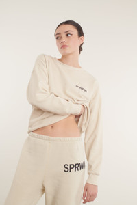 Our small logo sweatpants are a classic pull-on jogger style that is printed with our SPRWMN logo. Renownedfor their extremely soft & lightweight cotton-blend, these sweatpants create an ultra-breathable feel and host an effortless pull-on fit that is easy to wear.For the perfect outfit, complete the look with a matching logo printed sweatshirt. COLOR: Vintage White, Black Logo 50% Polyester, 38% Cotton, 12% Rayon Machine wash cold, tumble dry low SPRWMN logo on the front Fits true to size The model wears a size small 29" inseam, 13" rise, 9" leg opening Due to the soft nature of the fabric, slight pilling may occur FIT & MEASUREMENTS - Fits true to size - The model wears a size small PRODUCT DETAILS - 50% Polyester, 38% Cotton, 12% Rayon - Machine wash cold, tumble dry low - SPRWMN logo on the front