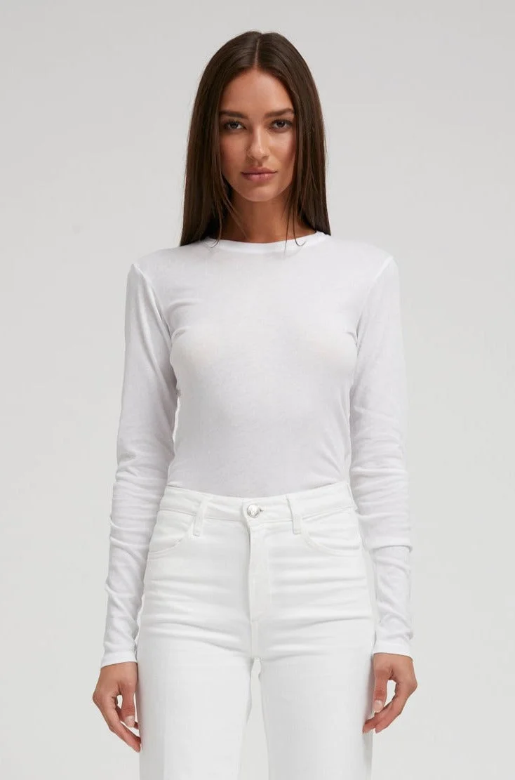 Our classic baby tee, but with long sleeves. Cut from ultra soft cotton-jersey, this closet essential has an easy crew neckline and is designed for a slightly loose fit for the perfect everyday go-to. With endless styling options, wear with anything from your favorite sweats, to jeans to leather trousers — the options are endless. COLOR:White FIT & MEASUREMENTS - Fits true to size - Anna is 5'11 & wears size Extra Small PRODUCT DETAILS - 100% Cotton - Long sleeve, classic fit - Machine wash cold, tumble dry low