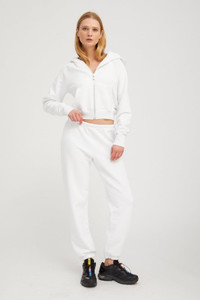 Meet the slightly fitted and more feminine take on a classic zip-up hoodie, made from extremely soft and heavyweight cotton. Featuring a hooded neckline and two functional pockets, with our signature SPRWM logo at the side waist. Complete the look with the matching sweatpants for an effortlessly chic and casual go-to. COLOR: White, Black Logo FIT & MEASUREMENTS - Fits true to size - Slightly cropped fit - Emma wears size Small PRODUCT DETAILS - 100% Cotton - Small SPRWMN logo at the side waist - Side slant pockets - Front zipper closure - Machine wash cold, tumble dry low