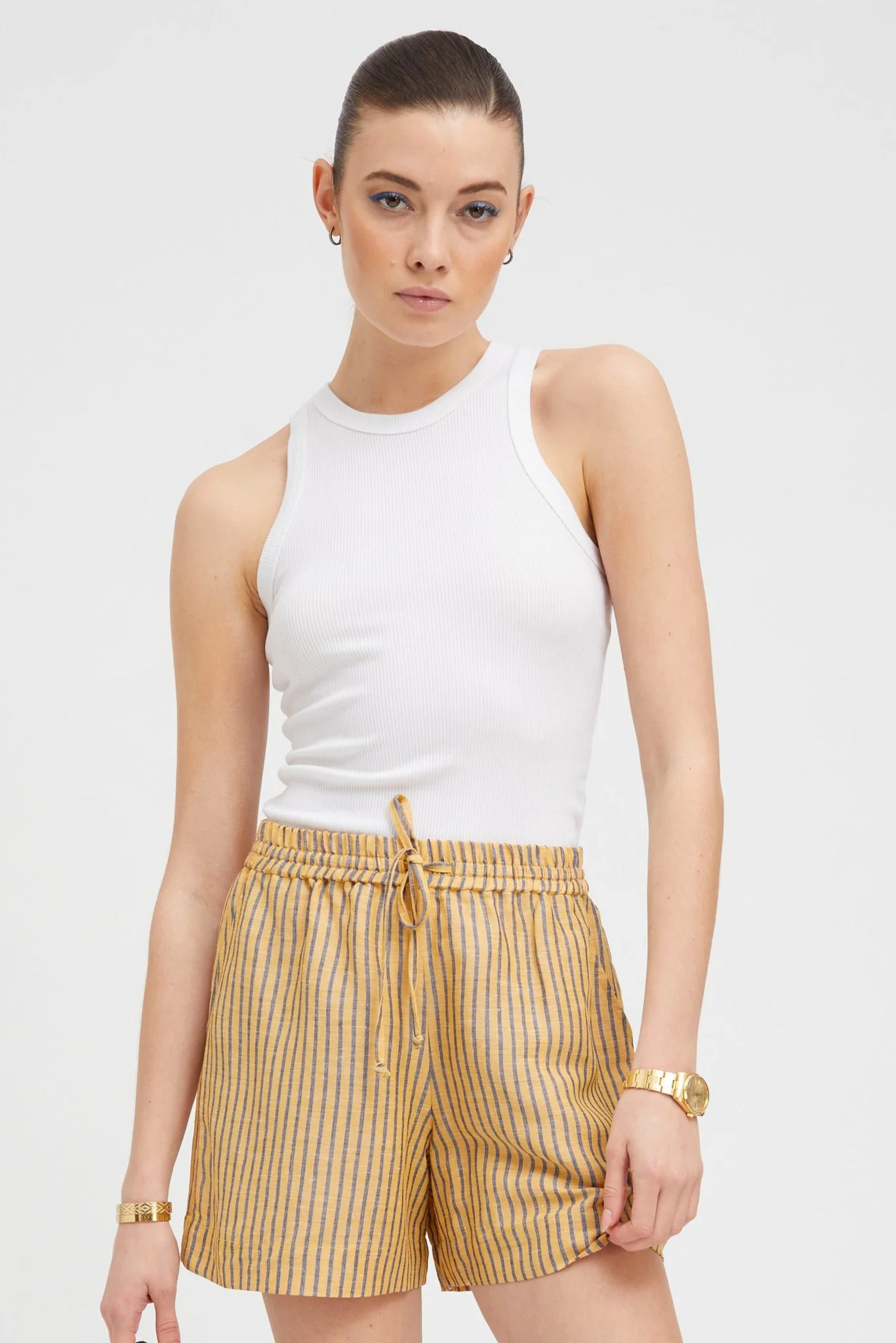 This classic racer back will easily become your go-to tank. Cut in our signature rib-knit fabric for an ultra-soft feel and stretch that will last. The vertical rib combined with a high neckline shape create a naturally slimming look. Throw it on with your favorite jeans or leather leggings for an easy and effortless look. COLOR: White FIT & MEASUREMENTS - Fits true to size - Designed for a slightly snug fit - Kiana is 5'11 & wears size Small PRODUCT DETAILS - 98% Tencel, 2% Spandex - Small vertical ridges for a slimming effect - Machine wash cold, tumble dry low