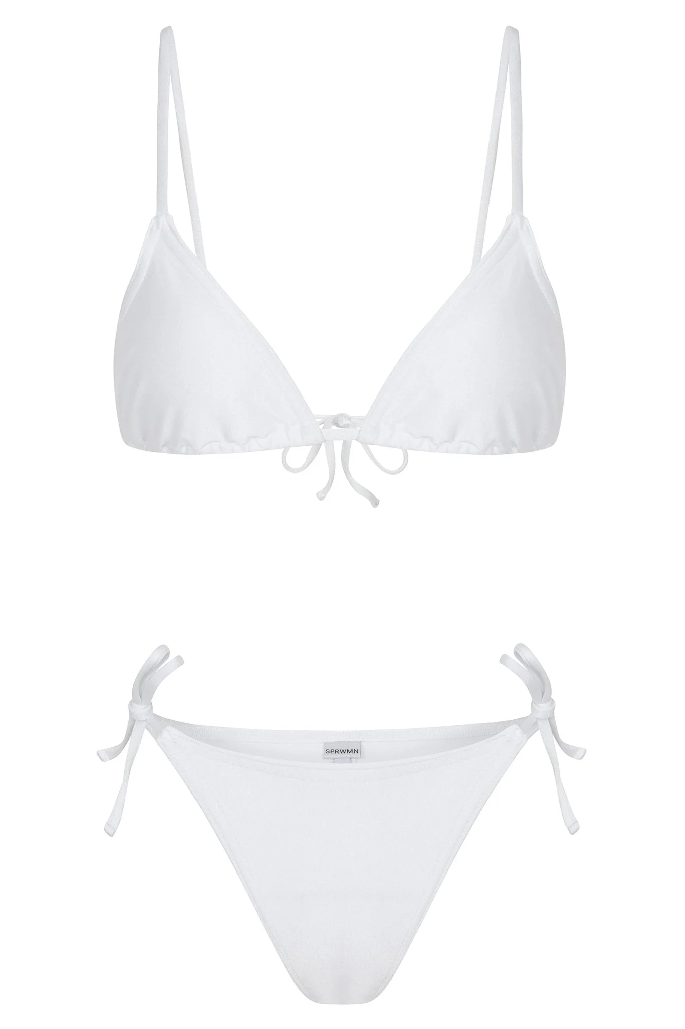 SPRWMN's tie bikini bottom, designed from our body-sculpting matte swim fabric for an ultra-flattering look and feel. Fully lined for just the right amount of cheeky coverage, this is the bikini you'll be reaching for all summer. Pair with the classic triangle bikini top for the perfect set. COLOR: White FIT & MEASUREMENTS - Fits true to size PRODUCT DETAILS - 80% Nylon, 20% Elastane - Double lined with self fabric - Adjustable side ties for a custom fit - Hand wash cold, hang dry