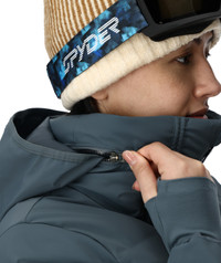 This new take on the Falline Down Jacket defines warm luxury. A cozy extra-tall collar and high-loft 650-fill goose down surround you in warmth. For those who want extra protection from the elements, a stowable hood is easily accessible. The Falline has EXO SHIELD 30K/30K waterproofing, 4-way external stretch and full stretch interior, and all the pockets you could ask for.. This jacket is the epitome of warmth and luxury. - EXO SHIELD 30K – 4-way Stretch Recycled Nylon with 30K/30K Laminate and DWR - 650 Fill Traceable Goose Down - Components are produced without PFAS chemicals - Hidden packable hood with adjustable opening fits over most helmets - YKK® Metaluxe® center front , chest and data card pocket zippers - YKK® hand pocket zippers - Gold Chassis : Full stretch engineered interior, removable powder skirt, spacer mesh padding at shoulders, internal zippered pocket, mesh goggle pocket, and chamois lens wipe - Underarm ventilation system - Inner stretch cuff with thumbholes - CB Length: Size 8: 22" - Fit: Fitted - 85% RECYCLED NYLON (POLYAMIDE) / 15% ELASTANE - 38SD025400_SLB
