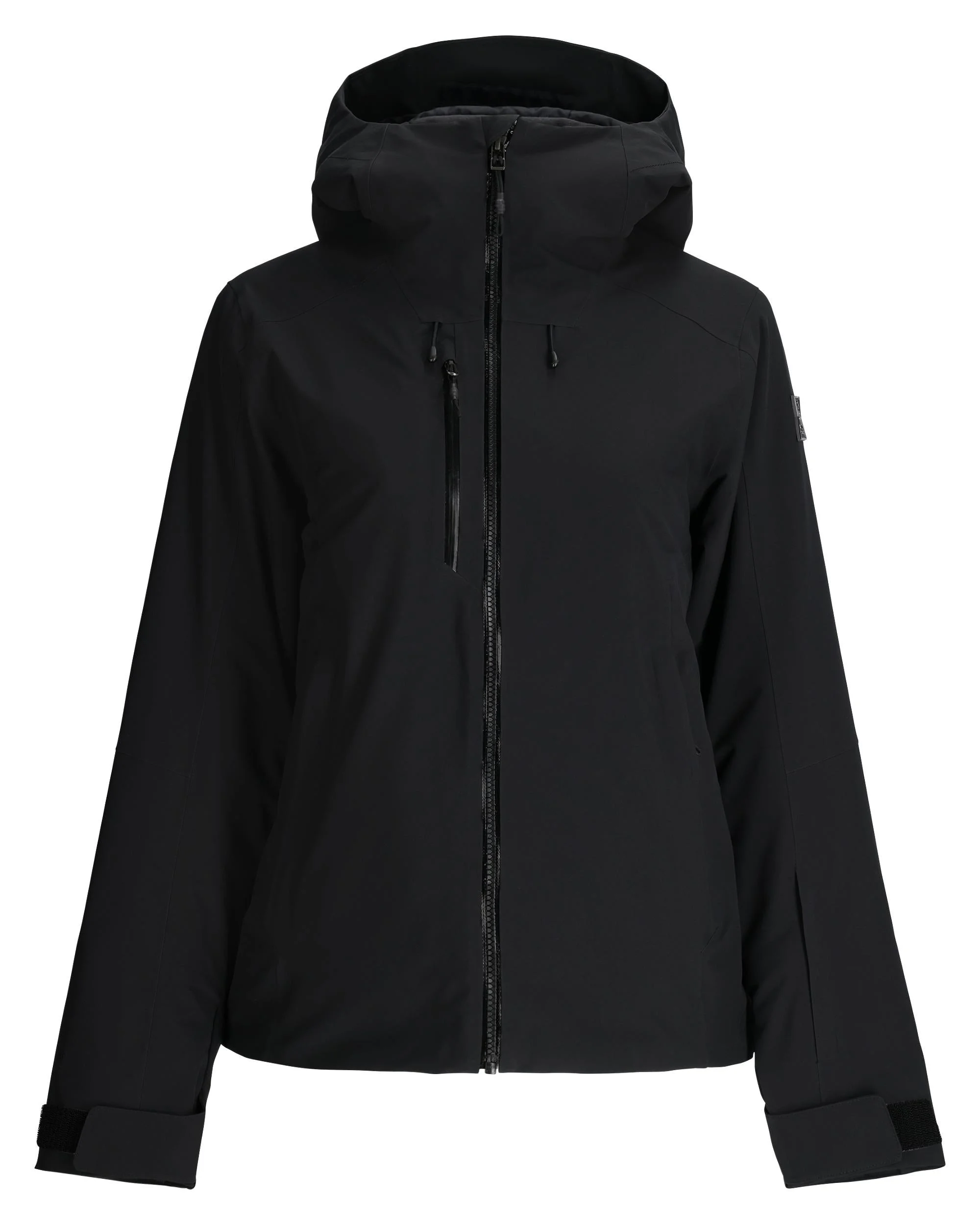 The Temerity Jacket is a modern take on classic spyder styling. Built with EXO SHIELD 4-way stretch recycled polyester shell and sealed from the elements with a 20k/20k laminate, the Temerity also features 100g PrimaLoft® Black Eco insulation to keep you warm while on the hill. Strategically placed pockets allow easily accessed storage, and YKK® AquaGuard center front and chest pocket zippers seal out moisture; the Temerity is a reliable go-to that stands out. - EXO SHIELD 20K – 4-way Stretch Recycled Polyester Plain Weave with 20K/20K Laminate and DWR - PrimaLoft® Black ECO Insulation (100g) - Components are produced without PFAS chemicals - All seams sealed - Fixed hood with adjustable opening fits over most helmets - YKK® Vislon® Aquaguard center front zipper - YKK® Aquaguard chest pocket zipper - YKK® reverse coil hand pocket zippers - Bronze Chassis: Taffeta lining, fixed powder skirt with snap-back feature, mesh padding at shoulders, internal zippered pocket, mesh goggle pocket, and chamois lens wipe - Underarm ventilation system - Adjustable cuff tabs with interior stretch cuffs and thumbholes - CB Length: Size 8: 26" - Fit: Standard - 100% RECYCLED POLYESTER - 38SD075334_BLK2