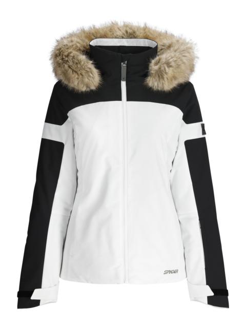 The Vida jacket combines style and functionality with classic design lines and a luxurious faux fur hood. It's made with 4-way stretch EXO SHIELD technology, 100 grams of PrimaLoft® Black insulation, and a 20K laminate, providing warmth and protection as temps drop. The Vida also features essential ski features like a powder skirt, inner pockets, and underarm venting for technical comfort. - 100% RECYCLED POLYESTER - EXO SHIELD 20K – Recycled Polyester 4-Way Stretch Plain Weave with 20K/20K Laminate and DWR - PrimaLoft® Black ECO Insulation (100g) - Components are produced without PFAS chemicals - Fixed hood with snap off faux fur trim fits over most helmets - Cord lock adjustment at back hood - YKK® Vislon® center front zipper - YKK® Reverse coil hand pocket zippers - YKK® zippered data card pocket on sleeve - FIxed powder skirt with snap-back feature - YKK® internal pocket zipper - Mesh goggle pocket - Chamois lens wipe - Underarm ventilation system with YKK® zippers - Adjustable cuff tabs - Interior stretch cuffs and thumbholes - Drawcord adjustable hem - CB Length: Size 8: 25.5" - Fit: Standard - 38SD073509_SDN