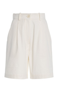 The emerging talent (and a favorite of Harry Styles) evolves the heritage pieces that define British fashion into sleek yet playful standouts. 'Clement' is a knee-length short cut from tailoring wool with a pleated waistband for a wider leg. PRODUCT DETAILS - Spring '25 - Zip fastening - Composition: 100% wool - Designer color: Ecru - Dry clean - Made in Portugal