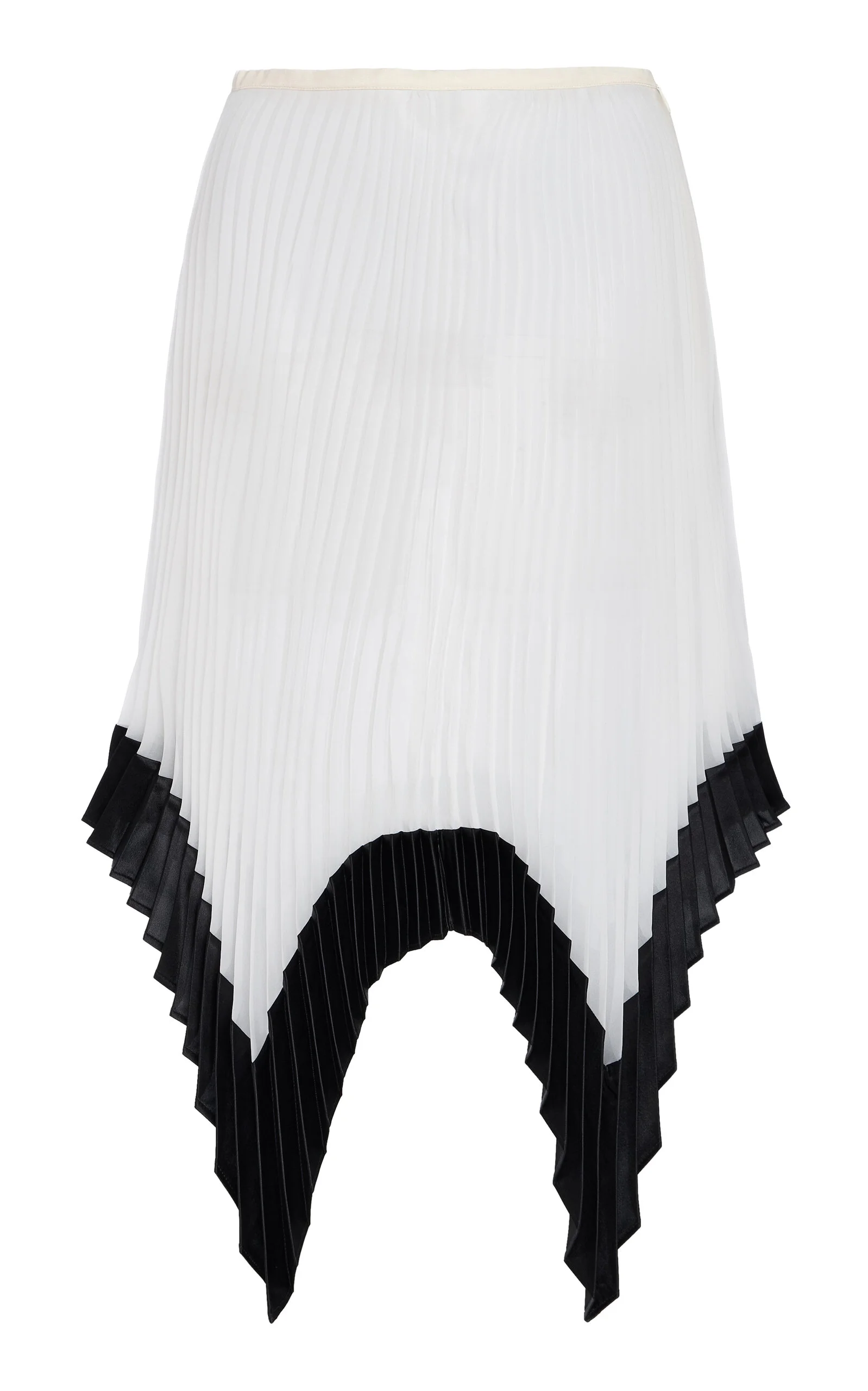The emerging talent (and a favorite of Harry Styles) evolves the heritage pieces that define British fashion into sleek yet playful standouts. Made from sheer plisse silk organza, this mid-length skirt features a handkerchief hemline made from contrasting satin. PRODUCT DETAILS - Spring '25 - Zip fastening - Composition: 100% silk - Designer color: Ecru - Dry clean - Made in Portugal