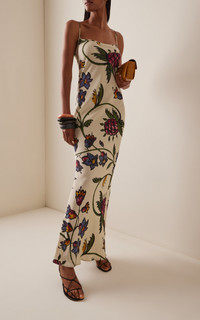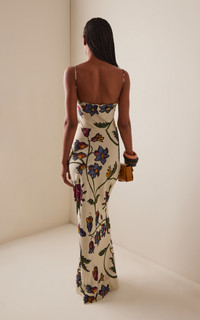 For Fall '25, the emerging talent (and a favorite of Harry Styles) evolves the heritage pieces that define British fashion into sleek yet playful standouts. The 'Willow' column maxi dress is cut in a lightweight fluid satin. It features a floor length figure-hugging silhouette and a flattering scooped neckline with delicate spaghetti straps. PRODUCT DETAILS - Fall '25 - Zip fastening at back - Composition: 100% viscose - Dry clean - Made in Portugal SIZE & FIT - Our model is wearing a size UK 6 - Model is 5'9" with a 32" bust, 24" waist, and 35" hip