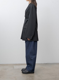 A signature single-breasted long jacket from Ssstein, crafted from the brand’s original wool gabardine, densely woven with Super 120’s yarns and finished with piece dyeing for depth and richness. An optional leather drawcord at the waist allows for flexible styling while maintaining a clean, oversized silhouette. Details include a notched lapel, buttoned cuffs, front patch pockets, and a back vent. - Made in Japan - 100% Wool - Available in Black - The model is 5'8"/173cm and wears size XS - Unisex, oversized fit - we recommend size S for XS/S, M for M/L