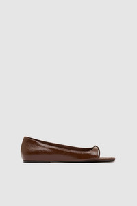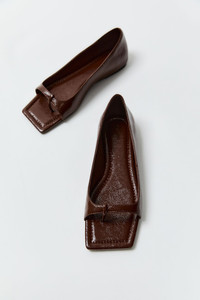 The 90s Square Toe Flat is a minimalist slip-on defined by its sharp square toe and distinctive split-toe opening. Finished with a softly padded insole, offering everyday comfort while retaining the clean, geometric lines of 90s inspired design. DETAILS Materials - Upper: 100% Lambskin Leather - Insole: 100% Bovine Leather - Outsole: 100% Bovine Leather - Leather Working Group (LWG) Certified Garment Details - Square toe flat, split toe opening, soft padded insole Manufacturing - SMETA Sedex Ethical Audit - Manufacturer has signed the St. Agni Code of Conduct - R - esponsibly made in China SIZING - Heel height: 0.6cm CARE - Clean gently with a soft cloth - Apply leather protector of your choice before wear - Avoid prolonged exposure to water - Allow to air dry, away from direct heat - Store in a cool, dry place in the provided, breathable dust bag - Keep out of direct sunlight and humidity - Use shoe forms or gently stuff with tissue, when storing, to maintain shape - Rotate between shoes, allowing them to rest between wears - Aging is expected and embraced - wear reflects the journey - Following proper care and storage advice, honours their form and extends their life