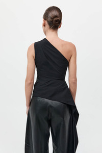 The Asymm Origami Top is a bold yet refined statement piece. Crafted with a striking one-shoulder neckline, featuring an origami-inspired folded side drape that adds an element of modern artistry. The Asymm Origami Top blends structure with fluidity, making it a standout addition to any wardrobe. DETAILS Materials - 66% Cotton / 31% Recycled Nylon / 3% Spandex - Recycled Polyester (GRS) Certificate Garment Details - One shoulder, origami folded side drape, side seam invisible zip - Fitted Manufacturing - Made responsibly in China CARE - Hand wash - Dry clean - Do not bleach