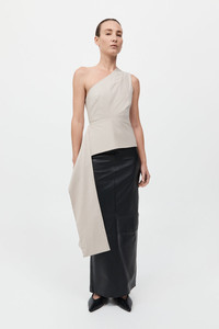 The Asymm Origami Top is a bold yet refined statement piece. Crafted with a striking one-shoulder neckline, featuring an origami-inspired folded side drape that adds an element of modern artistry. The Asymm Origami Top blends structure with fluidity, making it a standout addition to any wardrobe. DETAILS Materials - 66% Cotton / 31% Recycled Nylon / 3% Spandex - Recycled Polyester (GRS) Certificate Garment Details - One shoulder, origami folded side drape, side seam invisible zip - Fitted Manufacturing - Made responsibly in China CARE - Hand wash - Dry clean - Do not bleach