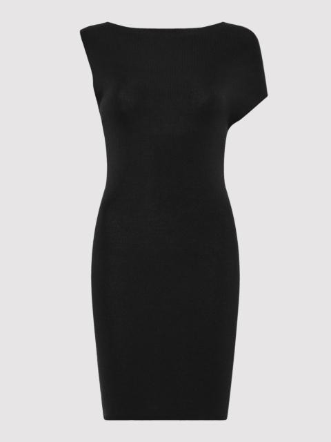 The Asymmetric Knit Mini Dress is crafted from a TENCEL™ Lyocell knit blend. Featuring an asymmetric neckline and sleeve for a modern edge. Falling to a mini length, the Asymmetric Knit Mini Dress is ideal for day-to-night styling. DETAILS Materials - 82% TENCEL™ Lyocell / 18% nylon - LENZING™ Certificate Garment Details - Knitted, asymmetric neckline and sleeve, mini length, fitted Manufacturing - Manufacturer has signed the St. Agni Code of Conduct - SMETA Sedex Ethical Audit - Responsibly made in China CARE - Wash and dry garment inside out - Cold hand wash in mild detergent - Do not soak - Do not twist or wring - Do not tumble dry - Dry flat in the shade - Ease into shape - Cool iron on reverse side - Do not hang, store flat - Do not dry clean (X)
