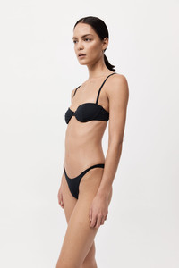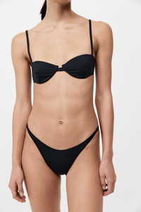 The Balconette Bikini Top is crafted in a responsibly recycled Nylon fabrication that moves with the body like a second skin. Featuring low coverage, slim straps, clasp fastening and an underwire for bust support. The Balconette Bikini Top is a classic piece that will be part of your swimwear wardrobe for years to come. DETAILS Materials - 77% Recycled Nylon / 23% Spandex - Lining: 88% Recycled Polyamide / 12% Elastane - Recycled Nylon (GRS), OKEO- TEX Standard 100 Garment Details - Slim straps, low balconette cups, underwired, clasp fastening, lined Manufacturing - Manufacturer has signed the St. Agni Code of Conduct - BSCI Social Audit - Responsibly made in China CARE - Cold hand wash separately - Do not bleach - Do not soak - Do not iron - Do not tumble dry - Do not dry clean - Line dry in shade