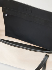 ST. AGNI's 'Bateau' tote is named after its sleek trapeze shape. It's made from cotton-canvas with contrasting leather trims. Inside, there's space for your phone, wallet and a notebook. Lower-Impact Materials. This product is made using at least 50% lower-impact materials or ingredients. Find out more about our NET SUSTAIN criteria here. Details & Care - Off-white cotton-canvas, black leather (Calf) - Top handles - Internal zipped pocket - Unlined - Magnetic fastening at open top - Comes with a dust bag - By purchasing this product, you are supporting responsible leather manufacturing through Leather Working Group.