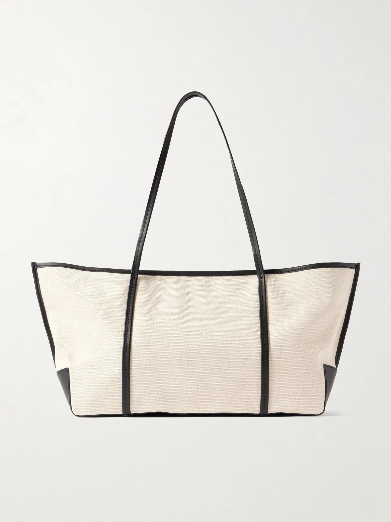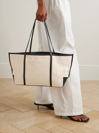 Bateau leather-trimmed cotton-canvas tote Off-white