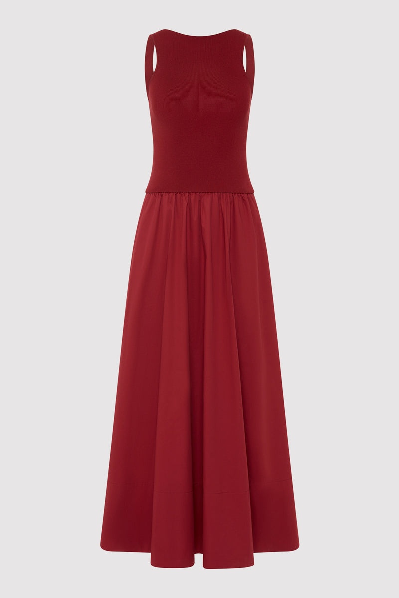 The Bateau Cut Out Dress offers a refined silhouette with subtle cut-out detailing. Featuring a fitted knit bodice that flows into a relaxed poplin skirt and maxi length. A versatile wardrobe essential, the Bateau Cut Out Dress transitions effortlessly from day to evening. DETAILS Materials - Bodice: 53% Viscose / 47% Recycled Polyester - Skirt: 100% BCI Cotton - Recycled Polyester (GRS) Certificate - BCI Cotton Certificate Garment Details - Bateau neckline, sleeveless, front side pockets, knit bodice, cut out back detail, poplin skirt, maxi length - Fitted bodice, relaxed skirt Manufacturing - SMETA Sedex Ethical Audit - GRS Certificate Fabric - BCI Cotton Certificate - OEKO-TEX 100 Certification Certification - Manufacturer has signed the St. Agni Code of Conduct - Made responsibly in China CARE - Cool hand wash - Wash with similar colours - Do not bleach - Do not tumble dry - Cool iron under cloth - Dry cleanable (P)