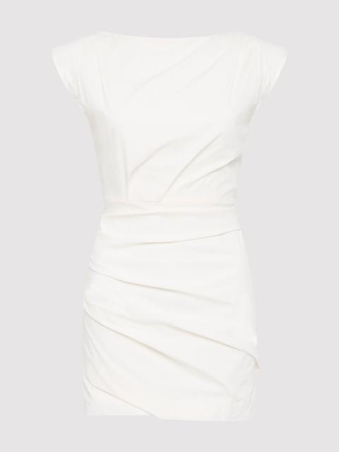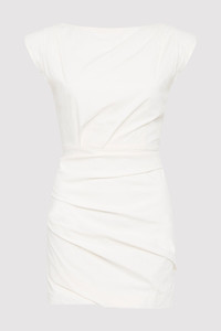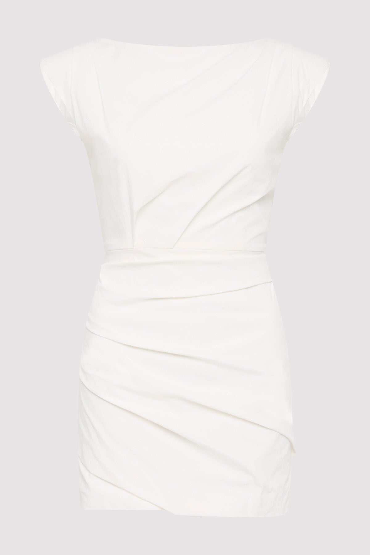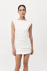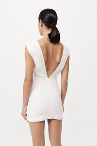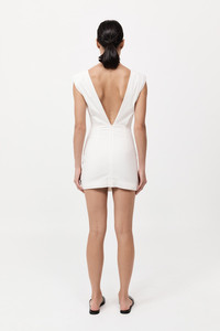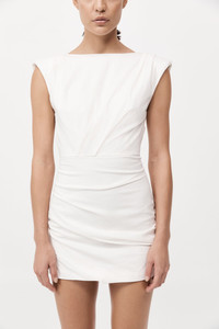 The Bateau Tuck Mini Dress is designed for a sleek and structured fit, featuring front tuck details that create a refined silhouette. Featuring a deep V back and subtle shoulder padding for a n elevated touch. Falling to a mini length, the Bateau Tuck Mini Dress is perfect for making a statement. DETAILS Materials - 61% Cotton / 31% Recycled Nylon / 3% Spandex - GRS (Recycled Nylon) Garment Details - Front tuck details, deep v back, centre back invisible zip, back darts, shoulder padding, mini length Manufacturing - Manufacturer has signed the St. Agni Code of Conduct - SGS Social Audit - Responsibly made in China CARE - Cool hand wash - Wash with similar colours - Do not bleach - Do not tumble dry - Cool iron under Cloth - Dry Cleanable P