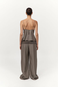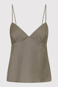 Cut on the bias for a naturally flattering drape, the Bias Cami features a V-neckline, delicate rouleau straps, bust darts and an underbust panel for subtle shaping. A center-back keyhole with button closure adds a refined touch, perfect for effortless warm-weather dressing. DETAILS Materials - 73% Polyester - 21% Lyocell - 5% Linen - 1% Rayon Garment Details - 7/8 length, v-neckline, sleeveless, rouleau straps, bust darts, hip seam detail, side seam invisible zip, asymmetric hem, unlined Manufacturing - SGS Social Audit - Manufacturer has signed the St. Agni Code of Conduct - Responsibly made in China CARE - Cool hand wash - Wash with similar colours - Do not bleach - Do not tumble dry - Cool iron under cloth - Dry cleaning recommended