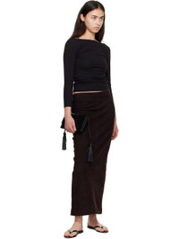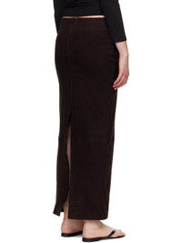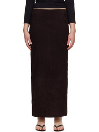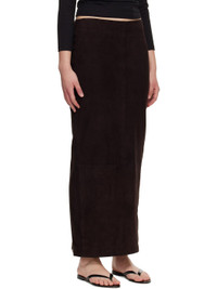 Goatskin suede midi skirt. · SGS- and LWG-certified · Slim-fit · Paneled construction · Low-rise · Concealed zip closure at back waist · Central vent at back hem · TENCEL® lyocell twill lining Supplier color: Coffee Body: 100% goatskin. Lining: 100% lyocell. Made in India 261193F092004