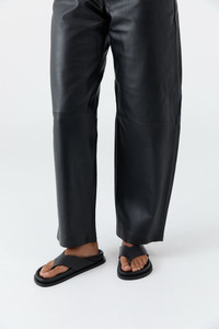 The Thong Slide is the ideal fusion of simplicity and comfort, designed for effortless wear. Featuring a thong strap upper and a moulded footbed, ensuring all-day comfort. A versatile wardrobe staple, the Thong Slide seamlessly combines understated refinement with practicality. DETAILS Materials - Upper: 100% Bovine Leather - Insole: 100% Calfskin Leather - Outsole: 100% Rubber - Leather Working Group (LWG) Certified Garment Details - Thong strap sandal, thick leather straps, moulded footbed, rubber platform Manufacturing - SMETA Sedex Ethical Audit - Manufacturer has signed the St. Agni Code of Conduct - R - esponsibly made in China SIZING - Base height: 2.5cm CARE - Clean gently with a soft cloth - Apply leather protector of your choice before wear - Avoid prolonged exposure to water - Allow to air dry, away from direct heat - Store in a cool, dry place in the provided, breathable dust bag - Keep out of direct sunlight and humidity - Use shoe forms or gently stuff with tissue, when storing, to maintain shape - Rotate between shoes, allowing them to rest between wears - Aging is expected and embraced - wear reflects the journey - Following proper care & storage advice, honours their form and extends their life