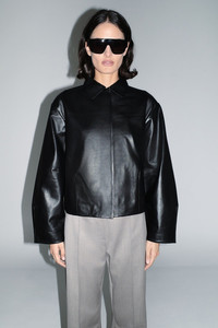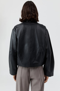 The Cocoon Leather Jacket features a relaxed fit with a collared neck and cocoon shaping. It includes front, back, and sleeve darts for a tailored look and is finished with concealed magnetic buttons for a sleek appearance. Crafted from 100% lamb leather and lined with 100% TENCEL™ Lyocell. DETAILS Materials - 100% Lamb Leather - TENCEL™ Lyocell lining - Vegetable Dyed Leather - Leather Working Group (LWG) Certified Garment Details - Collared neck, cocoon shaping, front, back and sleeve darts, concealed magnetic buttons, relaxed fit Manufacturing - Manufacturer has signed the St. Agni Code of Conduct - SGS Social Accountability - 8000 Audit Certification - Responsibly made in India CARE - Dry clean only - Spot clean with damp cloth