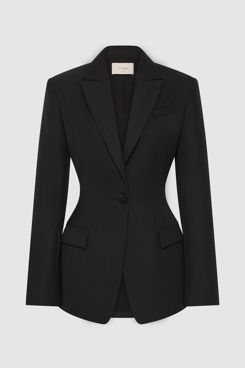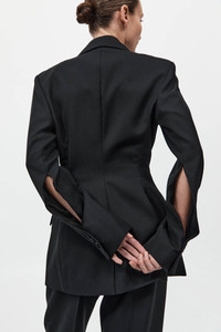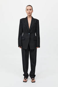 Defined by its sculpted silhouette and tailored fit, the Contour Blazer features sharply peaked lapels and a sleek single-breasted design. A subtle split-sleeve detail adds an elevated touch and contemporary flair. DETAILS Materials - 55% Recycled Polyester / 45% RWS Wool - Lining: 100% Lyocell - RWS Wool Certificate - Recycled Polyester (GRS) Certificate Garment Details - Sculpted silhouette, single breasted, peaked lapels, split sleeve detail, pocket flaps, shoulder pads - Tailored, slim fit Manufacturing - Manufacturer has signed the St. Agni Code of Conduct - BSCI Social Audit - Responsibly made in China CARE - Dry clean only - Do not bleach - Do not tumble dry - Iron on low temperature