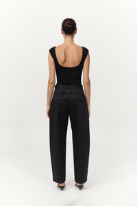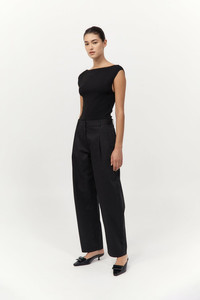 The Cotton Barrel Leg Pants redefine tailoring with subtle detailing and modern restraint. Featuring pleat accents and a loose barrel leg, creating a relaxed yet structured silhouette. Designed to sit comfortably at the mid-waist, the Cotton Barrel Leg Pants are a comfortable everyday favourite. DETAILS Materials - 51% Organic Cotton - 46% Cotton - 3% Elastane Organic Content Standard (OCS) Certificate Garment Details - Mid-rise, pleated, front fly closure, belt loops, front slash welt pockets, back pocket flaps, back darts, buckle tab detail, barrel leg, unlined Manufacturing - BSCI Social Audit - Responsibly made in China CARE - Cool hand wash - Wash with similar colours - Do not bleach - Do not tumble dry - Cool iron under cloth - Dry clean (P)