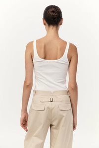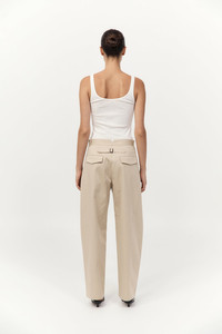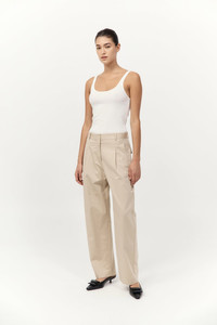 The Cotton Barrel Leg Pants redefine tailoring with subtle detailing and modern restraint. Featuring pleat accents and a loose barrel leg, creating a relaxed yet structured silhouette. Designed to sit comfortably at the mid-waist, the Cotton Barrel Leg Pants are a comfortable everyday favourite. DETAILS Materials - 51% Organic Cotton - 46% Cotton - 3% Elastane Organic Content Standard (OCS) Certificate Garment Details - Mid-rise, pleated, front fly closure, belt loops, front slash welt pockets, back pocket flaps, back darts, buckle tab detail, barrel leg, unlined Manufacturing - BSCI Social Audit - Responsibly made in China CARE - Cool hand wash - Wash with similar colours - Do not bleach - Do not tumble dry - Cool iron under cloth - Dry clean (P)