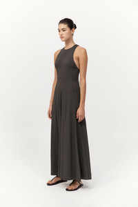 A modern silhouette that merges structure with ease, the Cut Away Maxi Dress is designed with a crew neckline, racerback, and curved panel lines that contour the body. Falling to a maxi length, the Cut Away Maxi Dress finished with a full circle skirt that creates fluid movement. DETAILS Materials - 97% Viscose - 3% Elastane Garment Details - Maxi length, crew neckline, sleeveless, panel lines, racerback, full circle skirt, center-back invisible zip, unlined Manufacturing - BSCI Social Audit - Responsibly made in China CARE - Do not bleach - Do not tumble dry - Do not soak - Iron on low heat under cloth - Dry clean (P)
