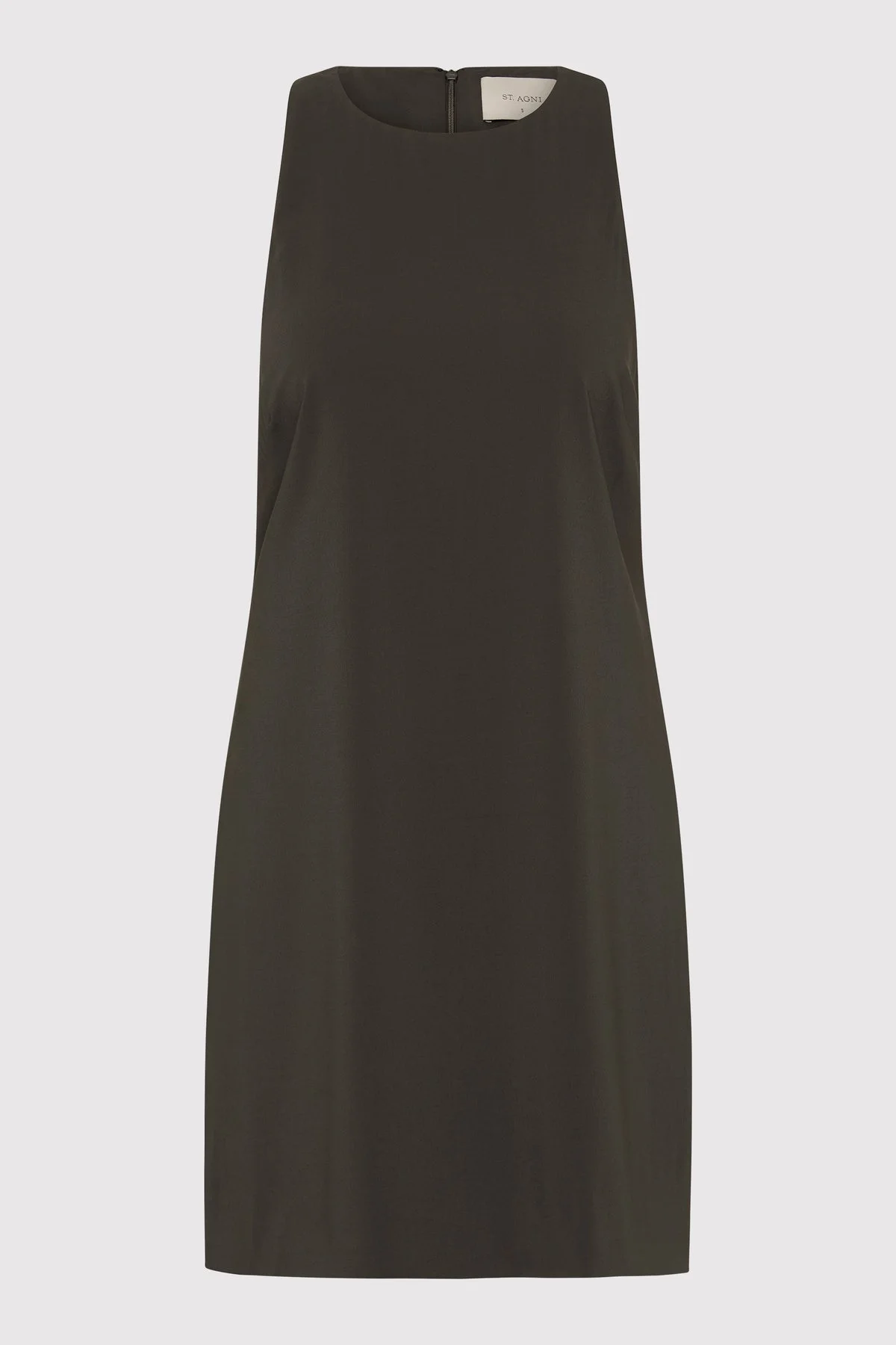 A modern silhouette with clean lines, the Cut Away Shift Dress is designed with a crew neckline, racerback, and subtle bust darts that shape the form. Cut to a mini length, Cut Away Shift Dress offers a refined approach to warm-weather dressing. DETAILS Materials - 97% Viscose - 3% Elastane Garment Details - Mini length, crew neckline, sleeveless, bust darts, racerback, center-back invisible zip, unlined Manufacturing - BSCI Social Audit - Responsibly made in China CARE - Do not bleach - Do not tumble dry - Do not soak - Iron on low heat under cloth - Dry clean (P)