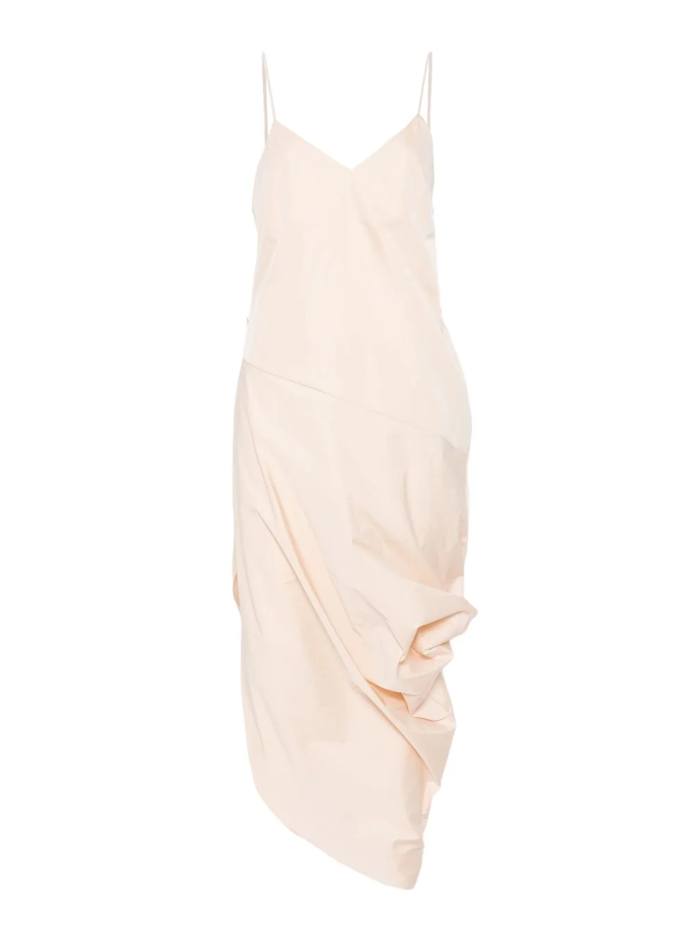 drape-detail midi dress Highlights - Pink - Spaghetti straps - Draped detailing - V-neck Imported Composition Recycled Polyester 80%, Silk 20% SIZE & FIT Model measurements Height 5 ft 10 in(1.78 m) Bust/Chest 33.46 in(85 cm) Hips 36.22 in(92 cm) Waist 23.22 in(59 cm) Washing instructions Hand Wash